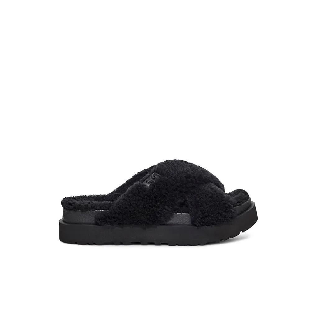 Evolving our iconic fluff sandals, the Fluffita is a flatform with everything you love about UGG. Featuring an adjustable strap and contoured footbed for a custom feel, it´s lined with curly sheepskin and punctuated with bold graphic logo detailing. Wear it indoors or out with a colorful dress, denim, and a band tee.